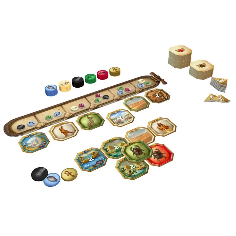 Ankh’or est un subtil mĂ©lange entre Splendor (jeu d’accumulation de ressources), JaĂŻpur (achat de tuiles sur un marchĂ©) avec un zeste de 7 wonders duel avec les combinaisons de tuiles et l’accumulation des points de victoire tout en veillant Ă ce que le ou les adversaires ne puissent pas acquĂ©rir les tuiles qui les intĂ©ressent. Ce n’est d’ailleurs pas un hasard si SĂ©bastien Pauchon l’auteur de JaĂŻpur est Ă©galement Ă l’origine de Ankh’or.