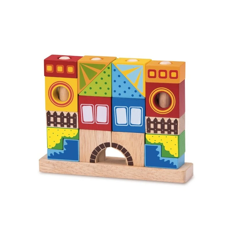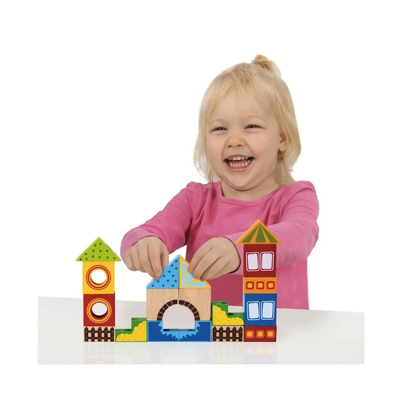 L’enfant pourra jouer Ă empiler et enlever les blocs de construction en crĂ©ant diffĂ©rents motifs ou laisser libre cours Ă son imagination. Jeu stimulant les capacitĂ©s motrices, la crĂ©ativitĂ© et la coordination main-Ĺ“il.