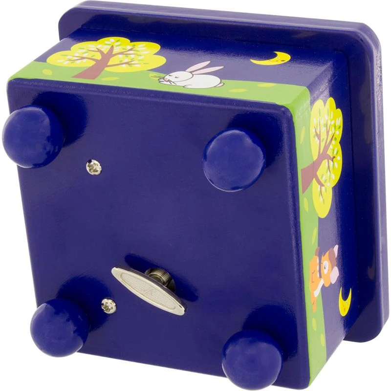 De drôles de hiboux très colorés dansent sur la musique Circle of life d’Elton John sur cette belle boîte à musique de couleur bleue nuit. Une boîte à musique de la marque Ulysse très poétique qui amusera votre enfant et qui l’accompagnera pour aller se coucher.