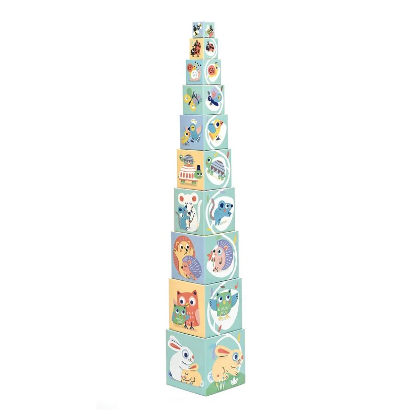 Les cubes empilés font une tour de 86 cm de hauteur que bébé s’amusera à construire et surtout à faire dégringoler !