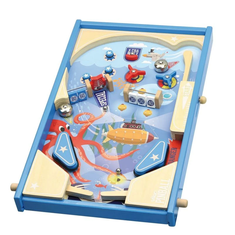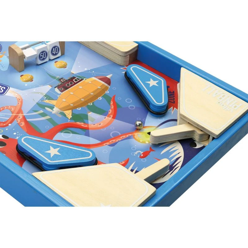 Comme sur les vrais flippers, les enfants Ă partir de 5 ans pourront s’exercer Ă faire des amortis et bloquer la bille avec les batteurs et s’amuseront dans ce joli dĂ©cor marin. Un jeu d’adresse original qui fera une belle idĂ©e de cadeau.
