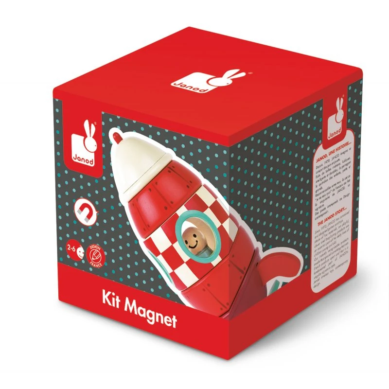 Cette fusée s’assemble facilement grâce aux aimants qui colle les pièces entre elles. L’enfant peut ainsi jouer à la monter et à la démonter. Ainsi après l’avoir construit il pourra jouer avec ou simplement s’en servir comme objet de décoration.