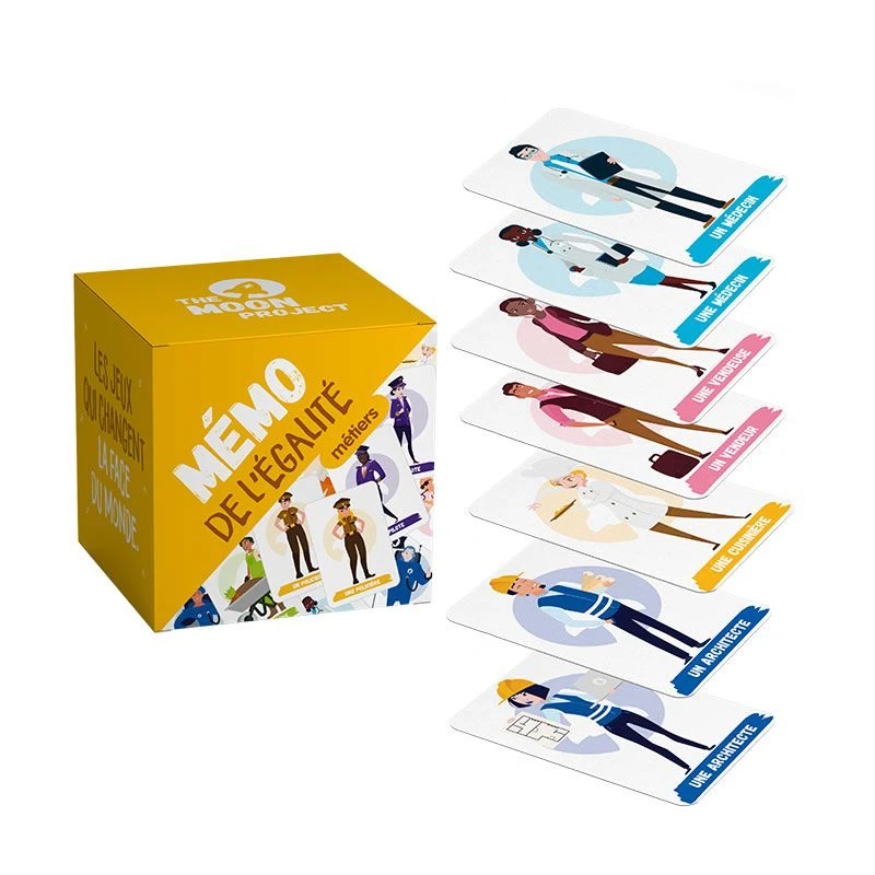 Reprenant les règles du classique jeu de mémory, ce jeu est composé de 24 paires de cartes représentant une femme et un homme exerçant un même métier : un plombier, une plombière, un pilote, une pilote, un cascadeur, une cascadeuse, un danseur, une danseuse ….