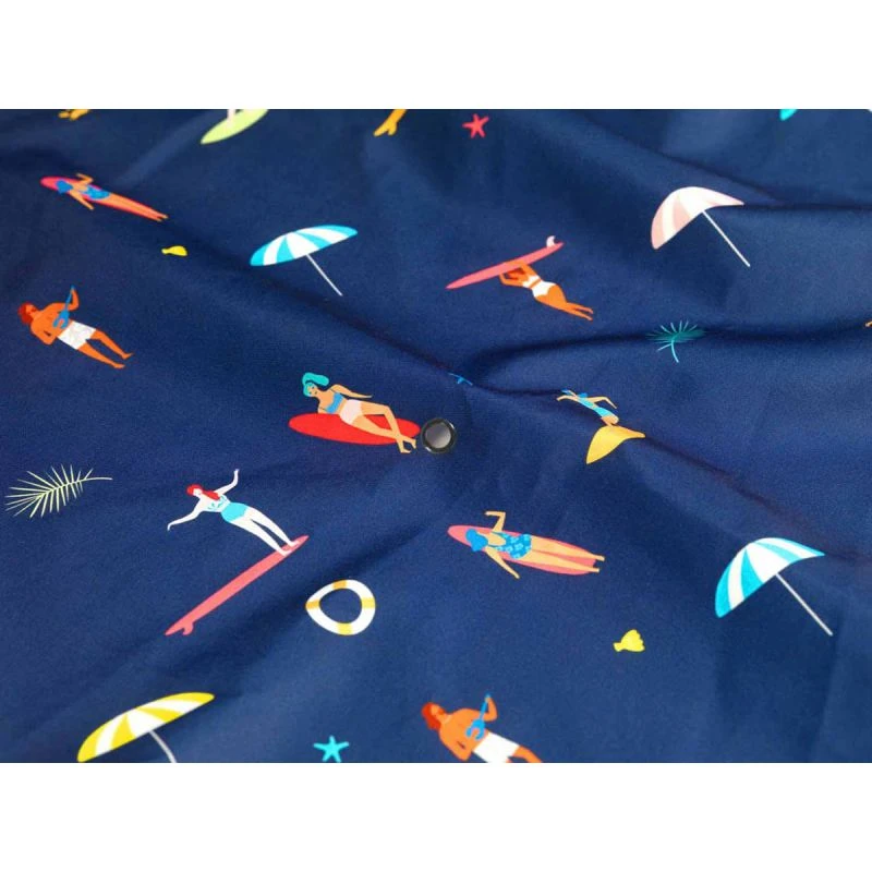 Découvrez la nouvelle gamme de sacs play and go Outdoor imperméables pour emporter vos affaires et l’utiliser à l’extérieur comme tapis de jeu. Ce tapis de jeu Surf de 140 cm de diamètre se transforme en un tour de main en sac de rangement à porter en bandoulière ou à la main grâce à sa poignée. Parfait pour la plage ce sac est décoré à l’extérieur avec des illustrations de surfeurs sur un fond bleu foncé et il est d’une couleur bleue claire unie à l’intérieur.