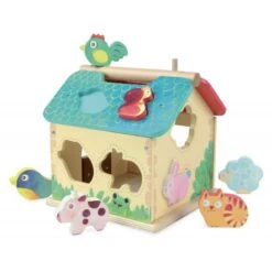 La ferme des formes et une très jolie boîte à formes en bois avec des décorations très soignées et très détaillées. L’enfant pourra s’amuser à encastrer les animaux ou simplement jouer avec les animaux comme des figurines.